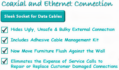 HIDES UGLY, UNSAFE and BULKY EXTERNAL DATA CONNECTIONS typically found in standard coaxial data cable outlets.