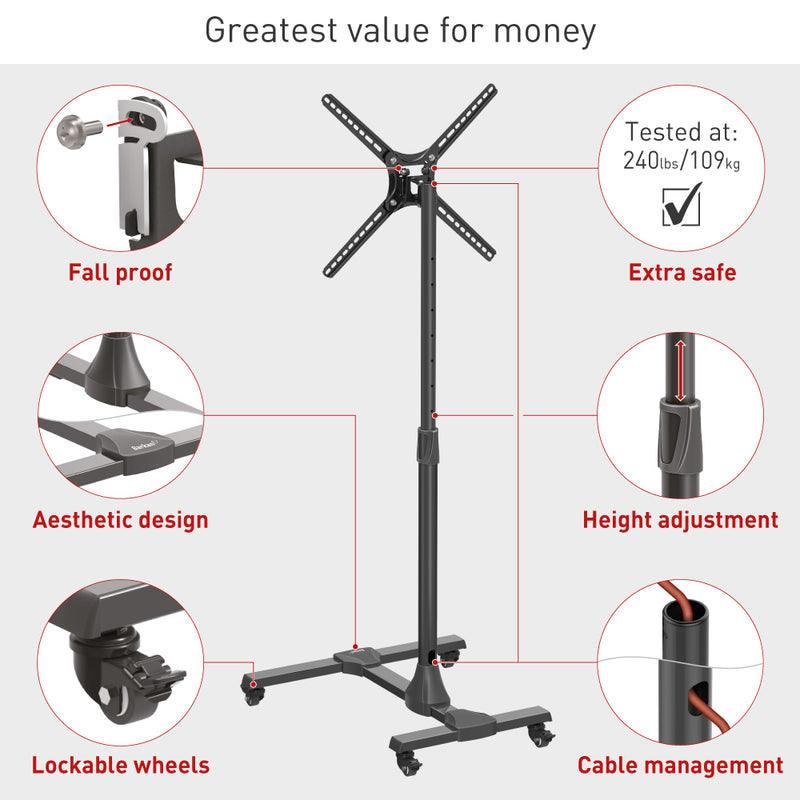 Barkan 13" - 65" Mobile TV Mount Cart - Tilt & Height Adjustment