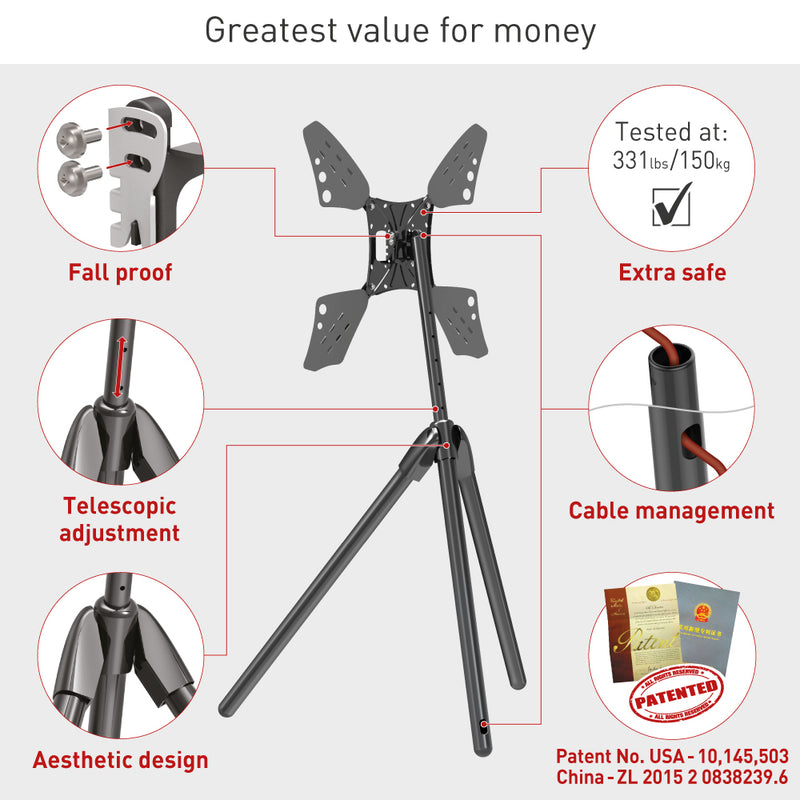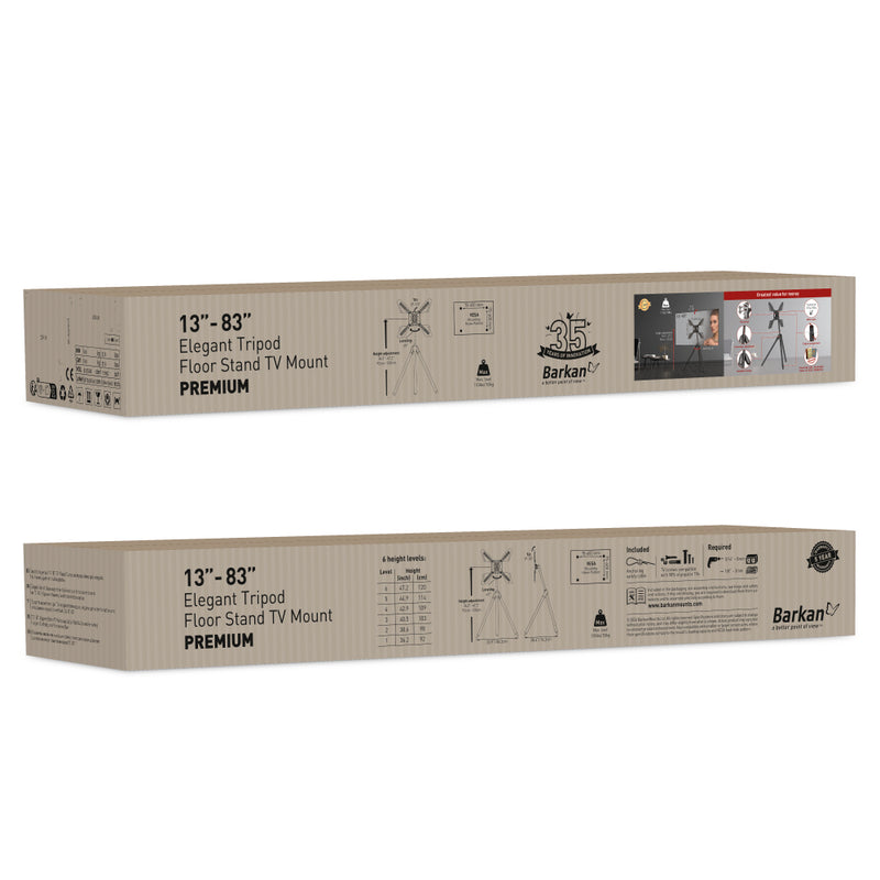 Barkan 13" - 83" Elegant Tripod Floor Stand TV Mount - Tilt & Height Adjustment