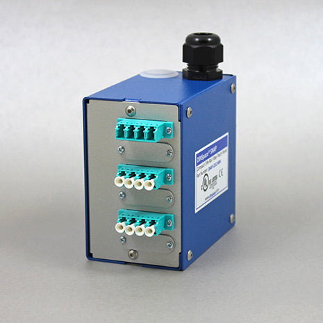DINSpace SNAP Compact Fiber Optic Patch Panel with 3ea. Multimode OM3 Compatible LC/LC Quad Fiber Adapters, UL/CE.