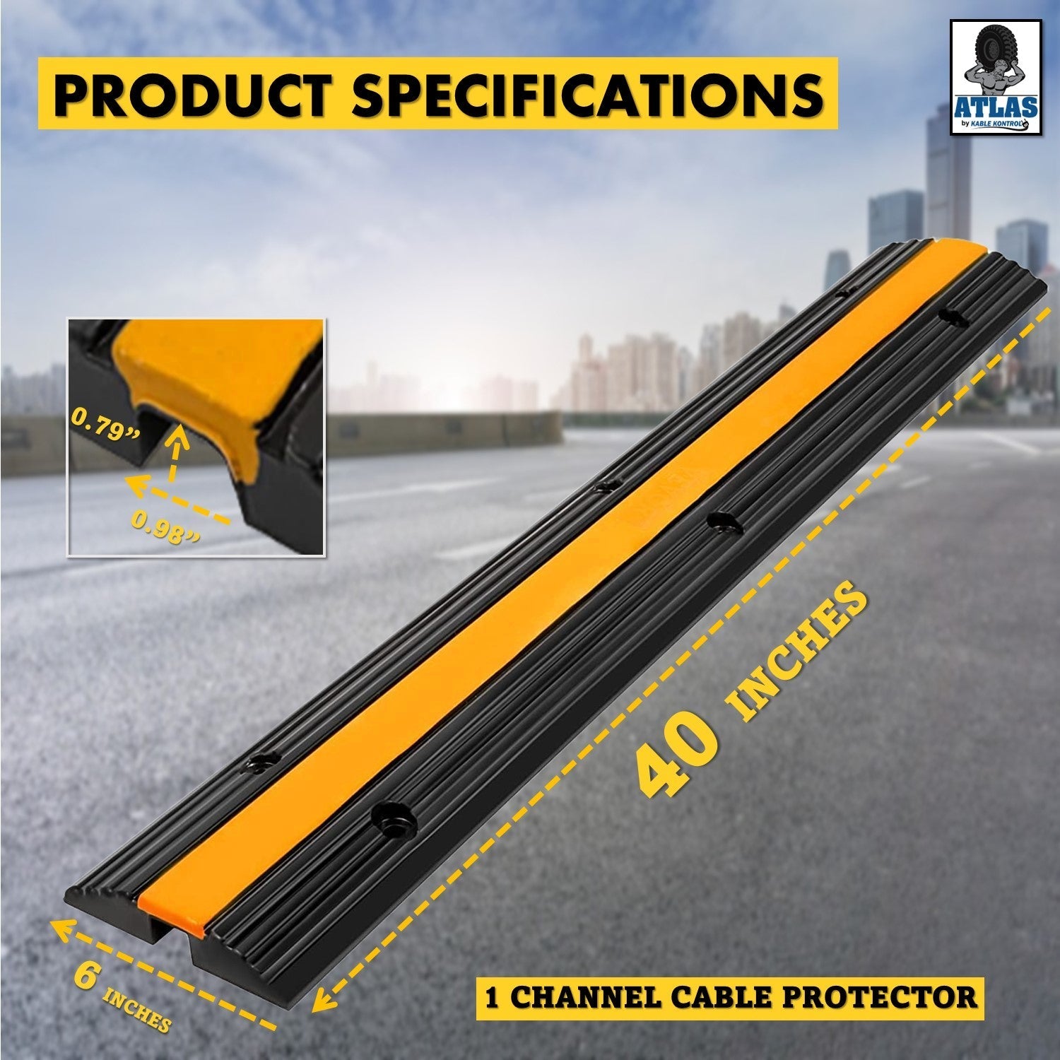 Safety Stripe Drop Over Rubber Cable Protector - 1 Channel - 40 " Long - 4 Pcs Pack