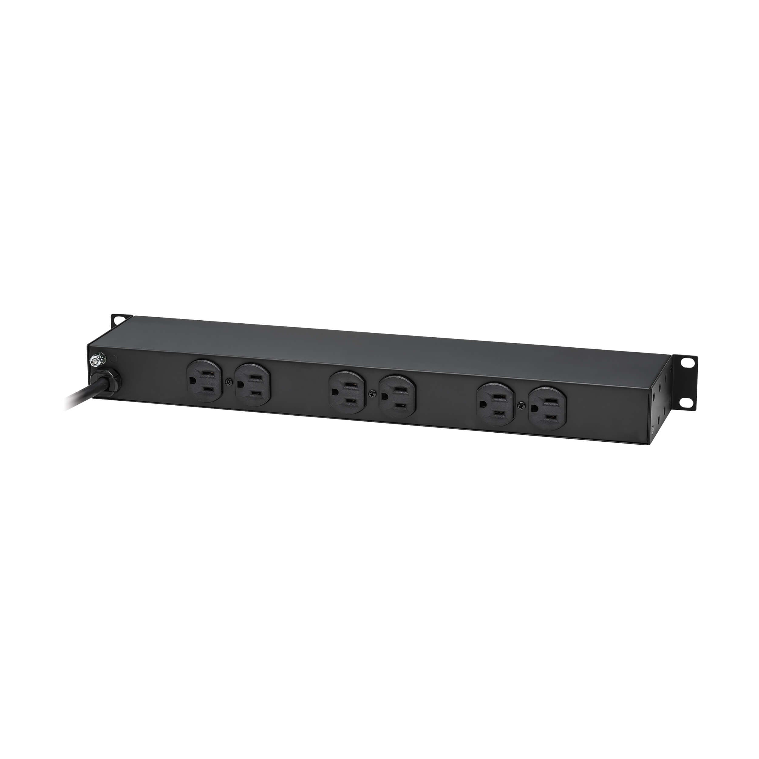 The RS-1215 Power Strip offers 15A capacity AC power distribution in a versatile multi-mount cabinet. Detachable mounting flanges are configurable for rack-mount, wall-mount and under-counter installation. Uses only 1U when installed in any 19-inch rack meeting EIA standards. Unfiltered electrical pass-through makes RS-1215 ideal for distributing alternate waveform UPS or generator power in rack enclosures, network closets and more. Includes 12 NEMA 5-15R outlets (six front/six rear), 15-foot (4.6-meter) cord and lighted switch with cover prevents risk of accidental turn-off.