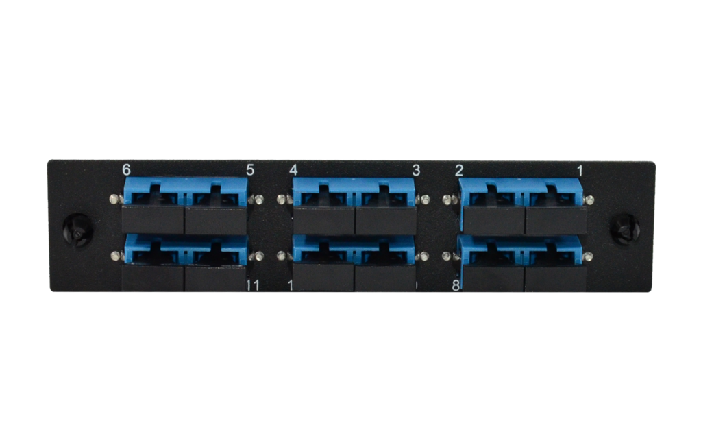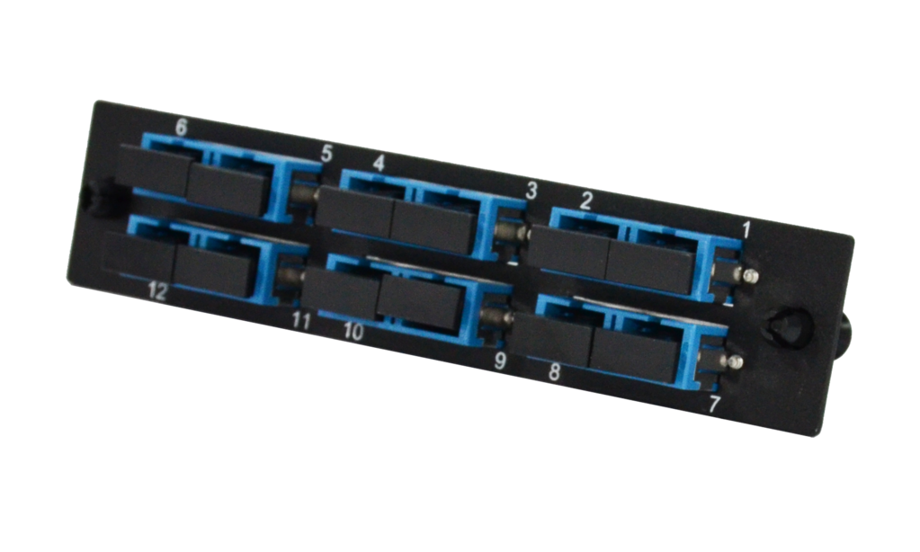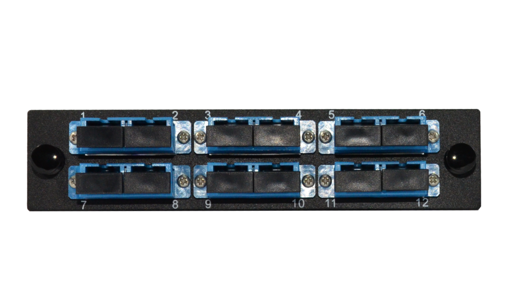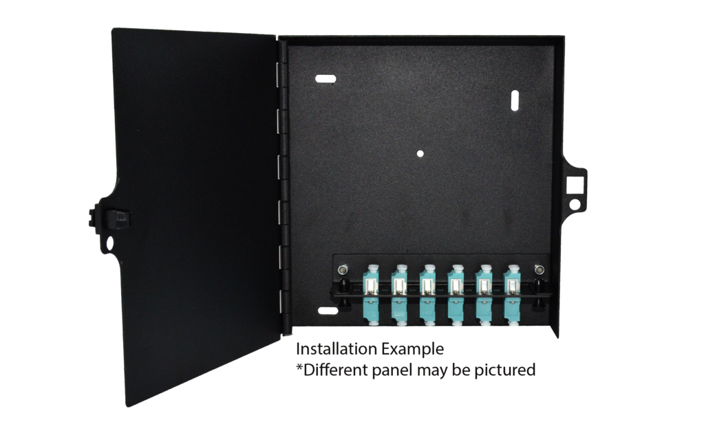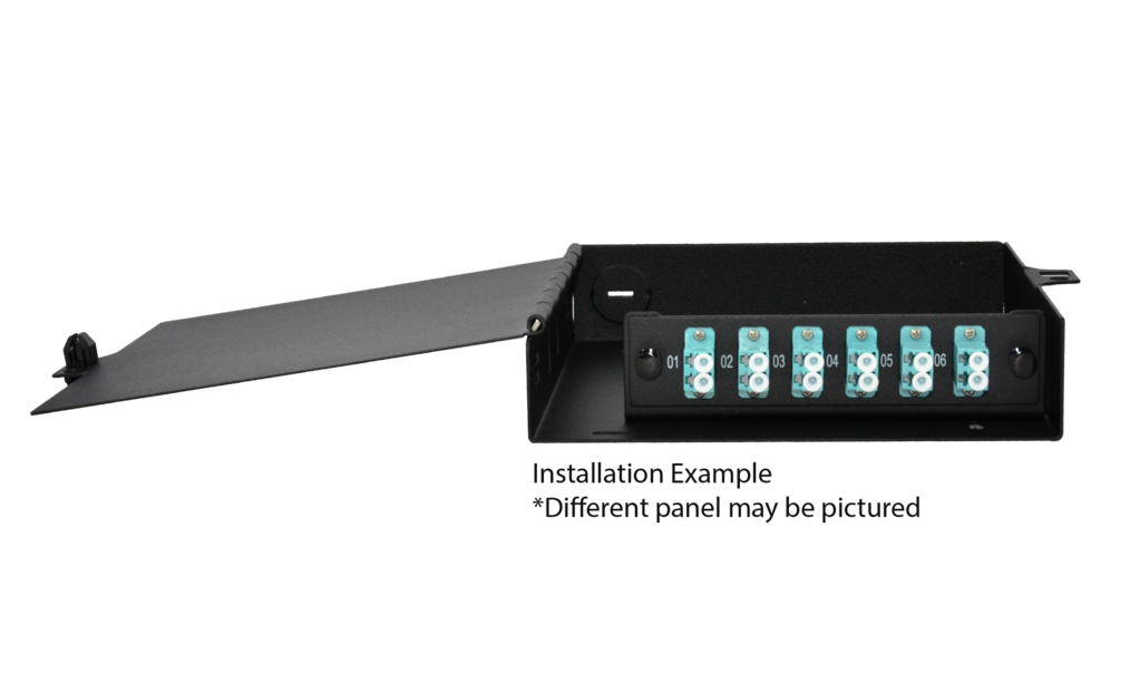 - Six duplex pass-through connectors (supports twelve total strands of fiber)
