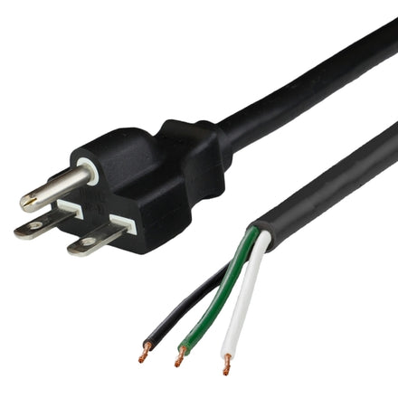 World Cord NACC Power Whip NEMA 6-15P to Open Ended 2" ROJ 1/4" Strip 15A 250V 14/3 SJT - Black