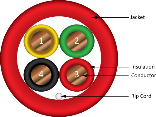 • Fire Alarm Cable, 22/4, Solid, Unshielded, FPLR (Riser), 500ft Coil Pack, Red