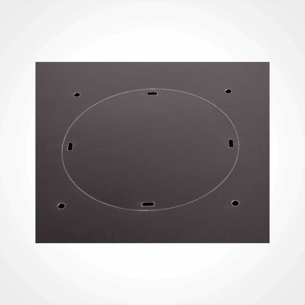 Strategically placed laser knockouts provide a plethora of locations to feed copper or fiber optic cabling into the cabinet, or to install an optional fan kit for temperature control.