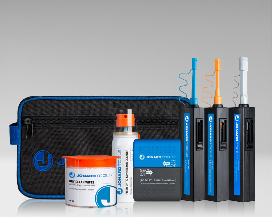 The Jonard Tools TK-287 Fiber Optic Connector Cleaning Kit+ offers cleaning products for use on connector end-faces and bulkhead adapters.