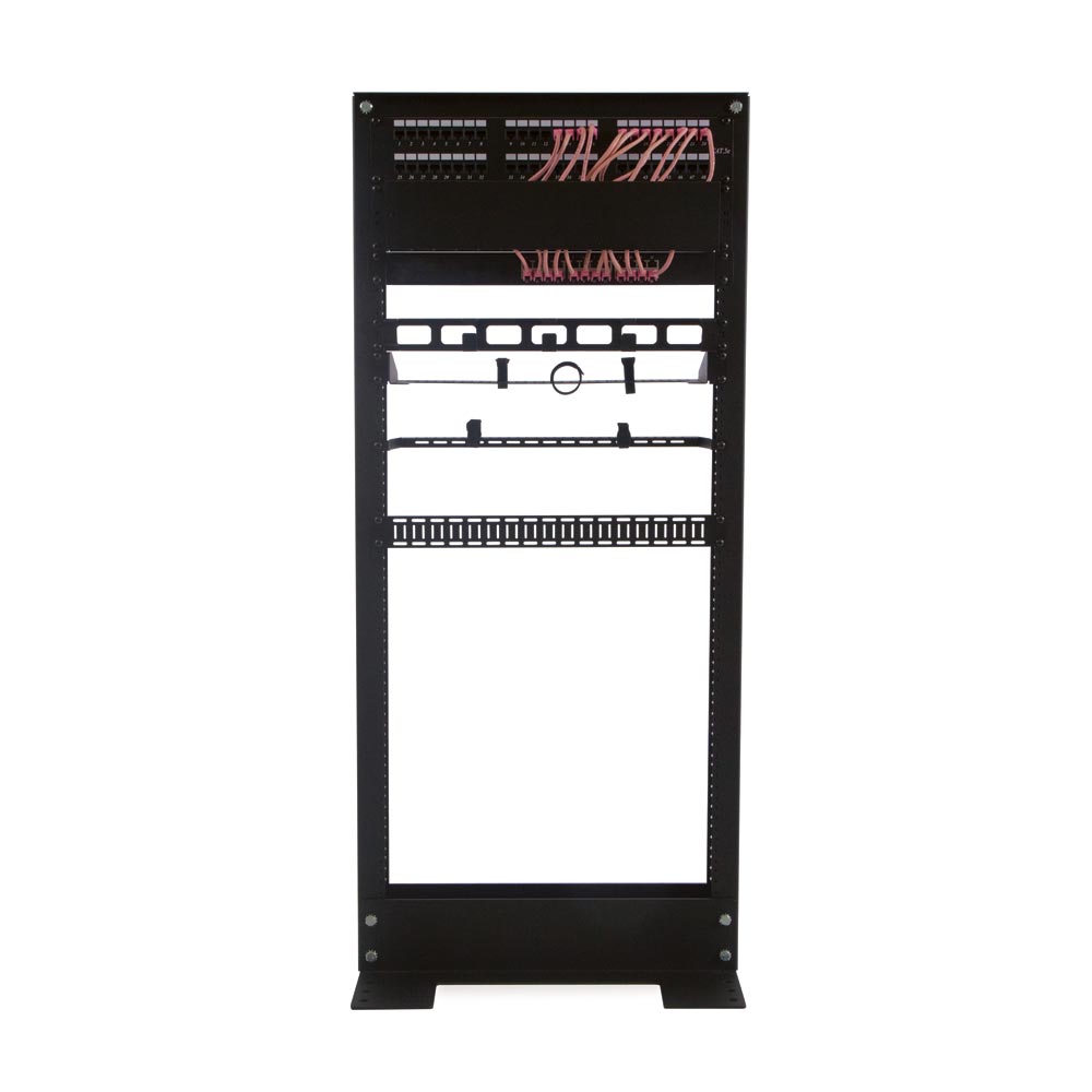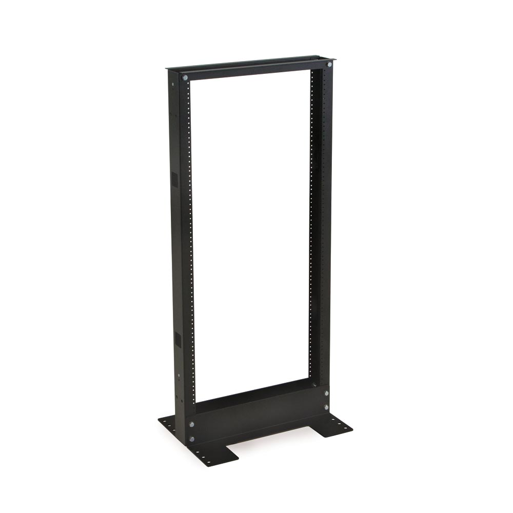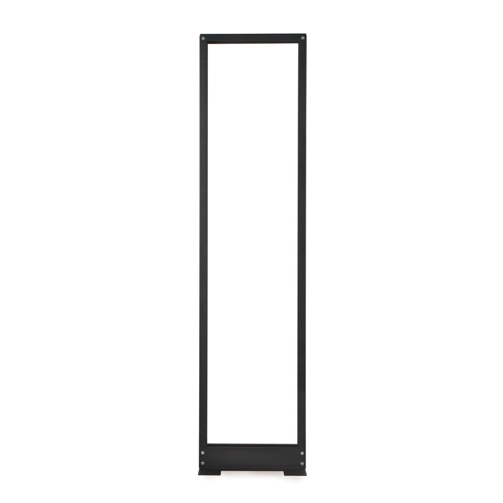 The 2-Post Relay Rack’s welded L-bracket base and cold rolled steel design forms a sturdy, reliable rack. To maintain its weight capacity, the rack must be bolted or secured to the floor. We always recommend installing your heaviest equipment at the lowest points on the rack.