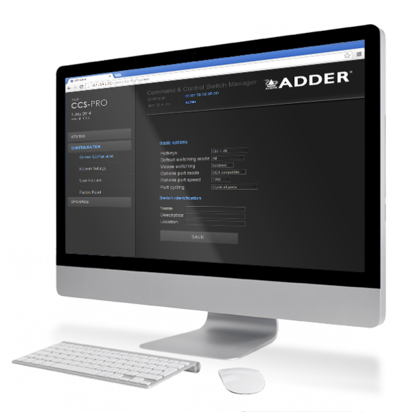 The ADDER® CCS-PRO8 is a Command and Control Switch which enables users to interact with up to eight computers using a single keyboard and mouse. The operator can simply move the cursor across screen borders to instantly select the computer they need to control providing the experience of a single desktop, saving both time and desk space.