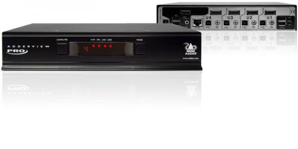 Part of the ADDERView® PRO range, the AV4PRO DisplayPort is designed to enable four computers equipped with DisplayPort technology to be controlled from a single KVM console. This four-port switch is also available in DVI or VGA variants.