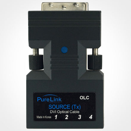 The PureLink OLC Tx DVI to 4LC Fiber Transmitter Unit extends a high definition 1080p signal up to 1640 feet over four-strand fiber optic cable. Convenient automatic EDID management eliminates the need for a separate DDC connection.