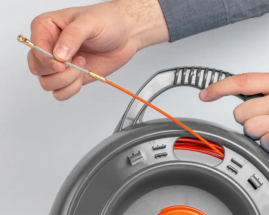 - Ultra-smooth pay out and furling of fish tape using the built-in reel handle