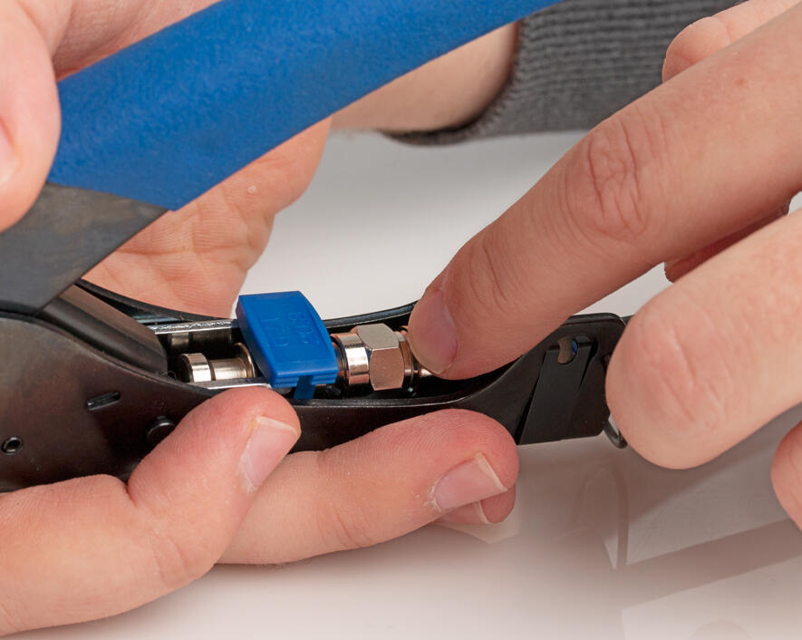 - Detachably coupled, advanced polymer compression system compresses the connector perfectly each time