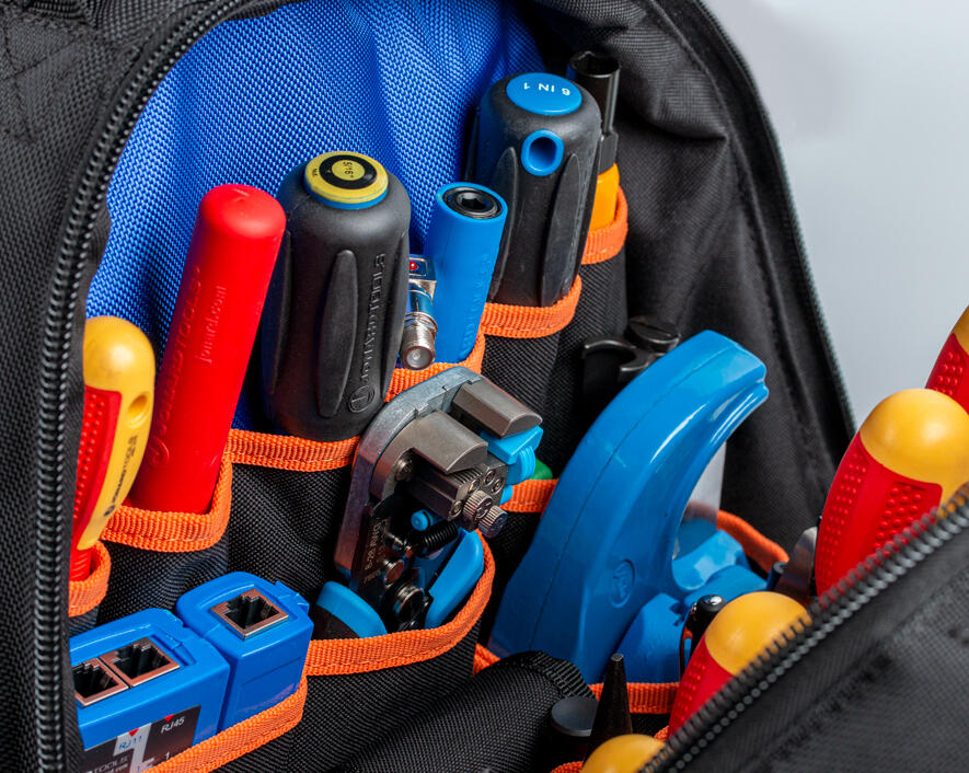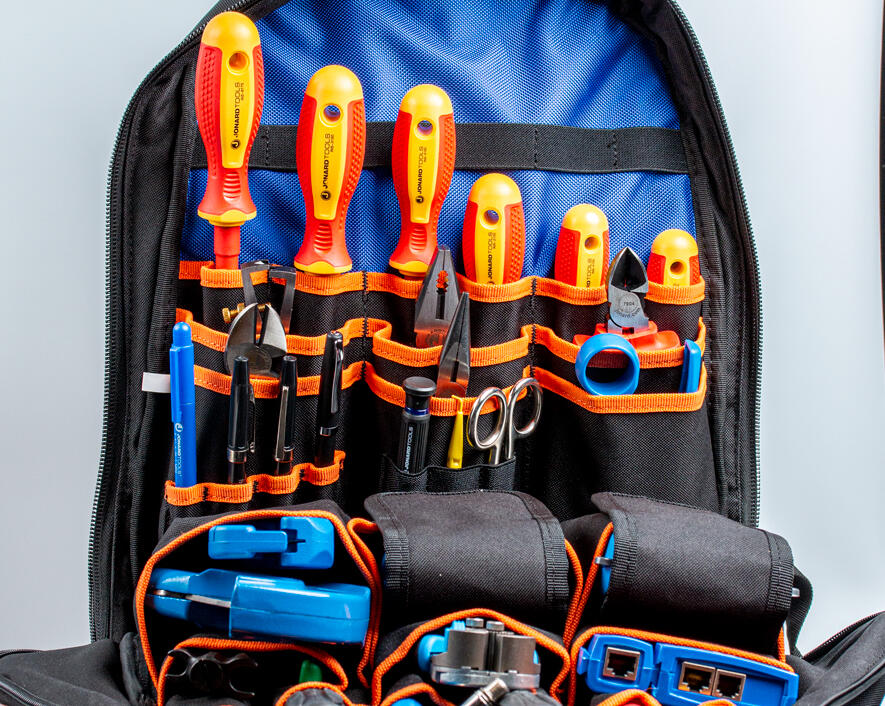 Jonard Tools' Technician's Tool Bag Backpack features 36 organizer pockets and 12 pocket straps to hold all your tools in place with a durable water resistant base to protect it from the elements. It also has a hard, molded front pocket for delicate items, like safety glasses, and a front zipper to hold loose parts.