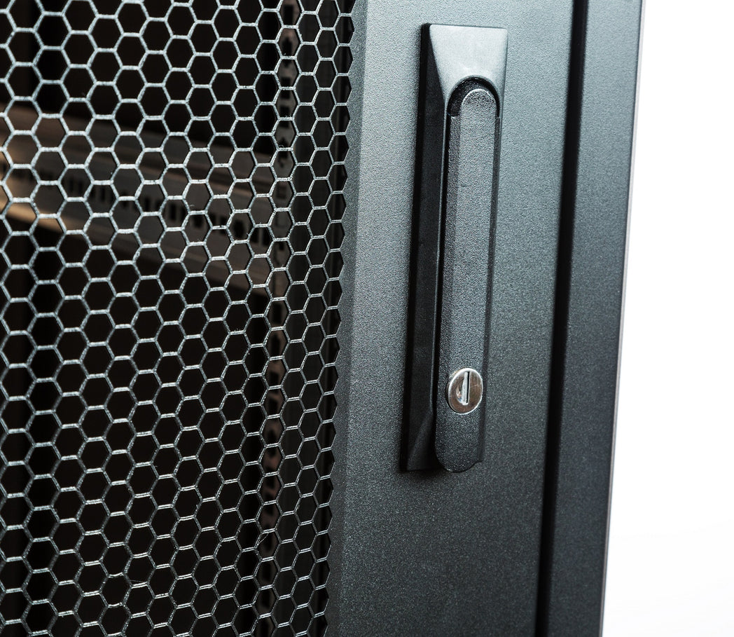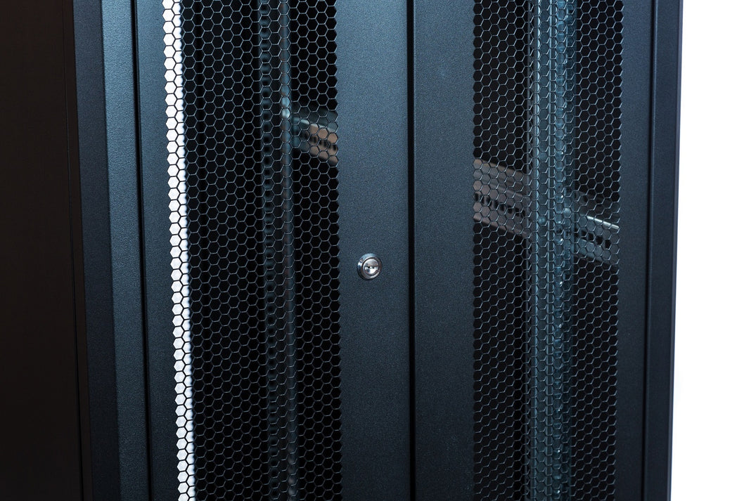- Split rear doors reduce clearance requirements for service access. The doors are perforated for optimal airflow.