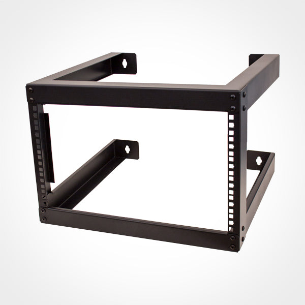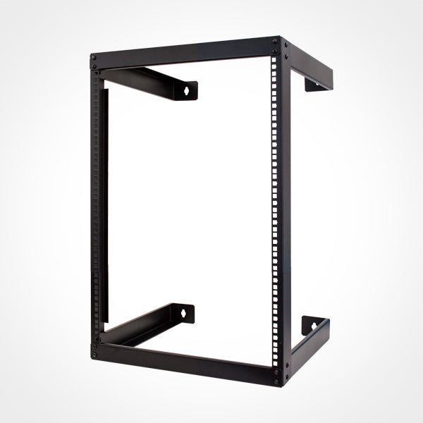 The Vertical Cable 047-WFJ steel frame open wall mount rack comes knocked down, ready for easy assembly. M6 screws and cage nuts included.