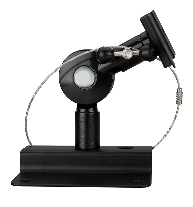 The PASBR is a heavy-duty wall/ceiling speaker mount, holding speakers up to 15kg/33lbs. The large square plate attaches to the wall/ ceiling and the small rectangular plate attaches to the speaker. The dual-axis mount with compression locking allows for 90° tilt while offering 360° rotation. When fully stretched, the mount puts speakers 140mm/5.5" from the wall or ceiling. The included steel cable provides additional security and safety.