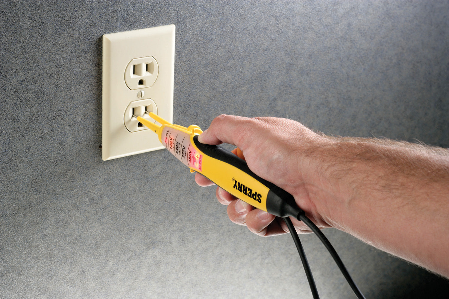 Heavy-duty voltage and continuity tester designed for any number of job site applications. Sperry Instruments unique design allows for convenient single hand testing of outlets when the probes are secured side-by-side on the tester housing. Just insert the probes into the outlet and if voltage is present the neon indicator(s) will glow.