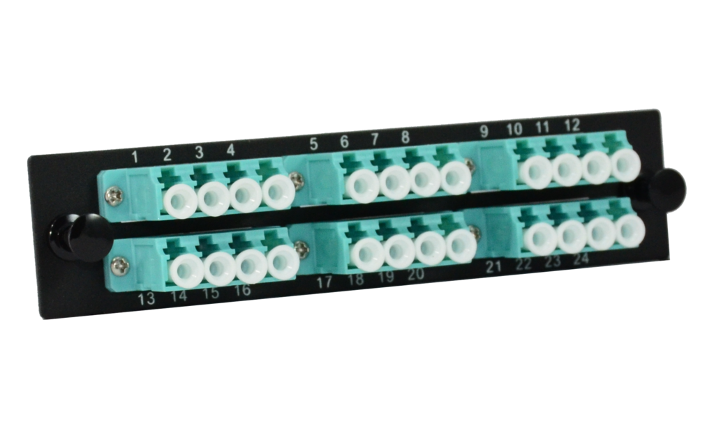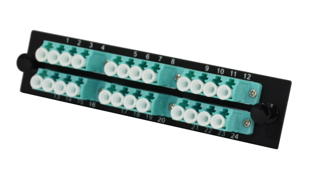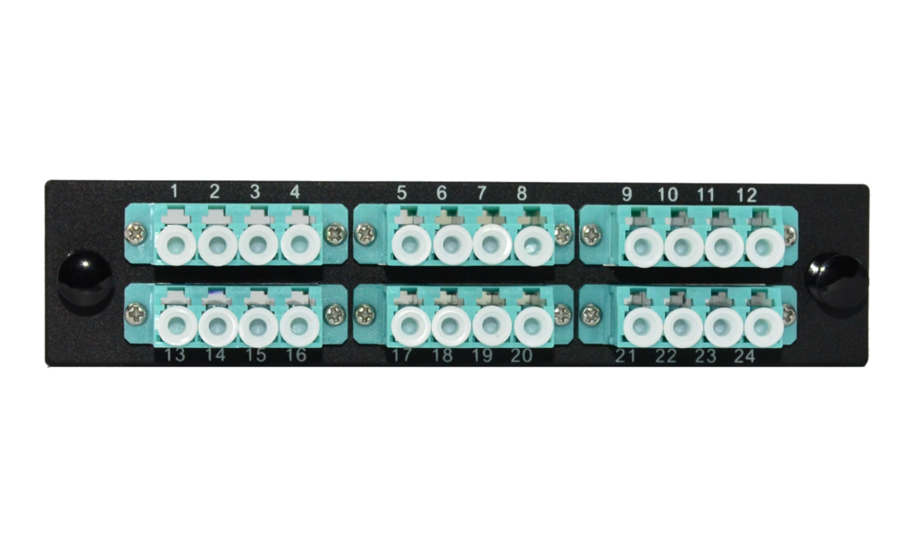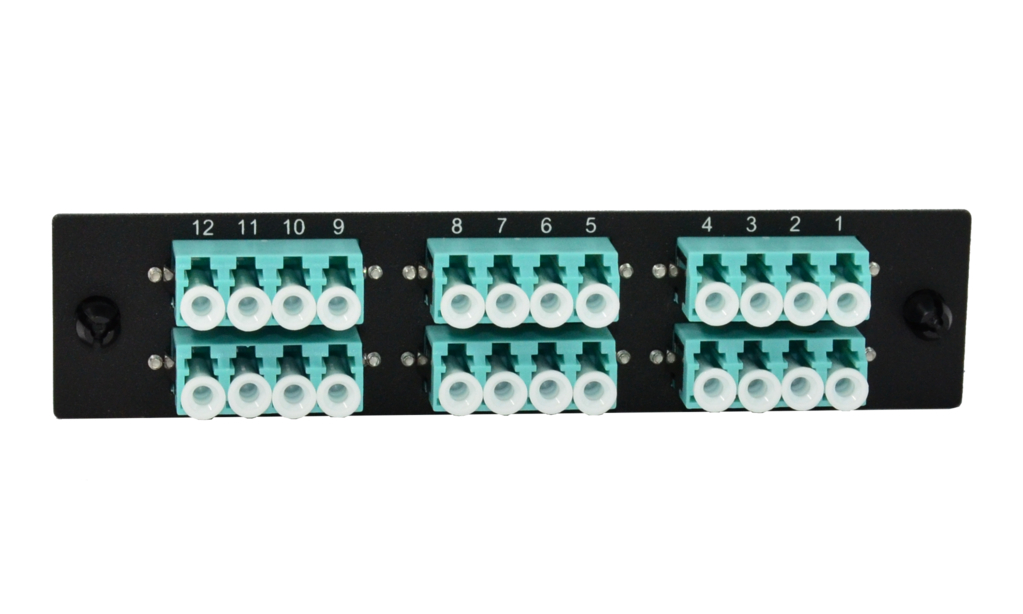 - Twelve duplex pass-through connectors (supports 24 total strands of fiber)