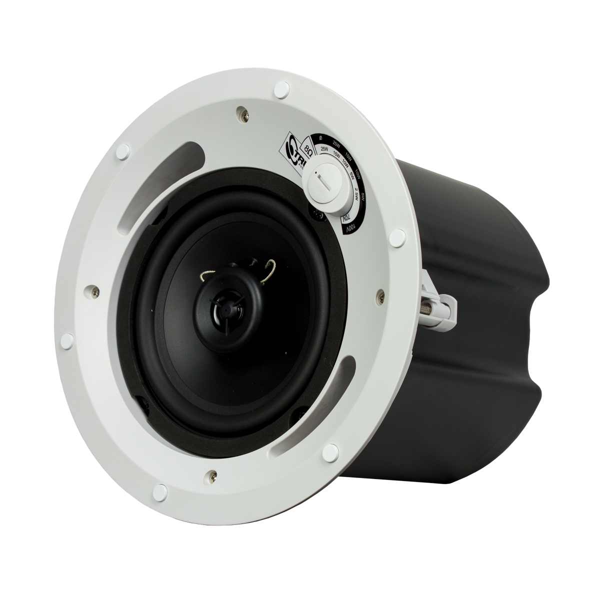 2-way, 70V/100V, in-ceiling, commercial speaker, 6.5" injected poly woofer, 3/4" PEI tweeter, 5-60 watts, 8Ω/70V/100V, UL Listed. Sold Each.