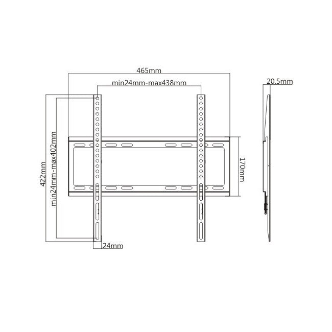 Simplicity is the key to this low profile fixed wall mount from Rhino Brackets. This TV wall mount is designed for flat panel screens measuring 32 to 55 inches and weighing up to 77 pounds. The open architecture of this TV bracket leads to increased ventilation to increase the longevity of your TV components, as well as easy access for wiring during installation. When mounted, it sits less than one inch (20.5mm) from the wall for a minimum footprint.