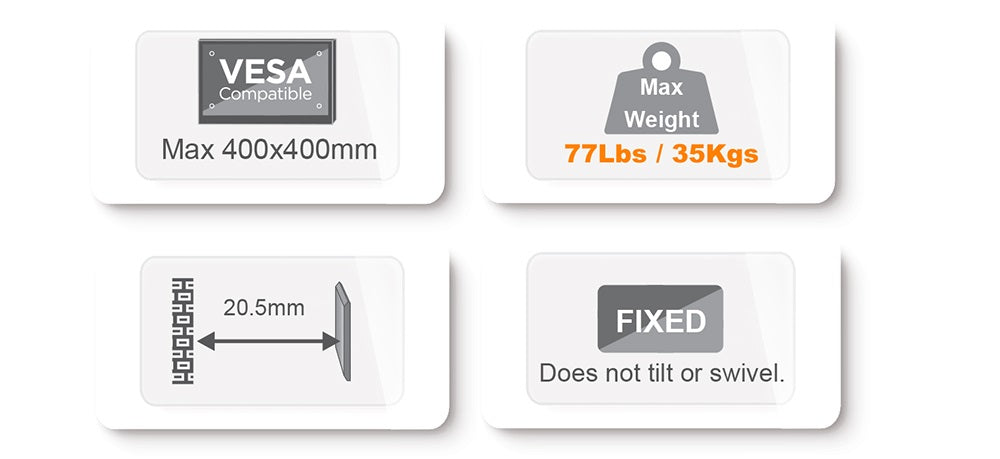 - Max VESA: 400x400mm