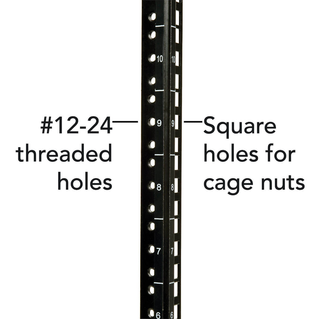- Rails support square-hole or 12-24 threaded-hole mounting