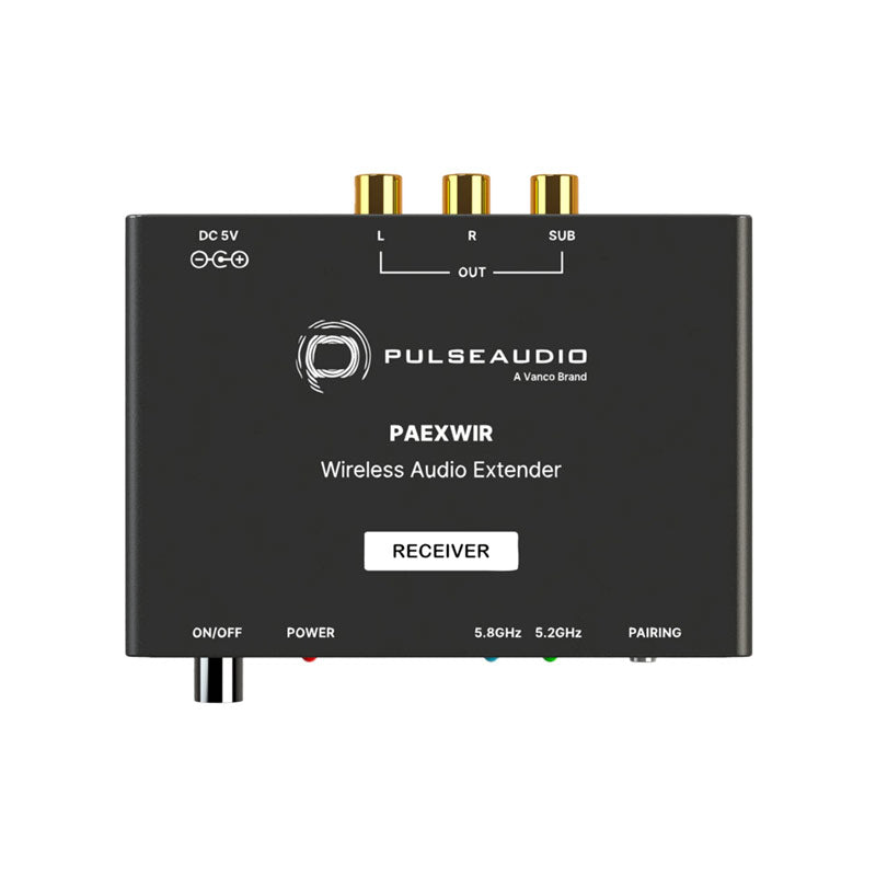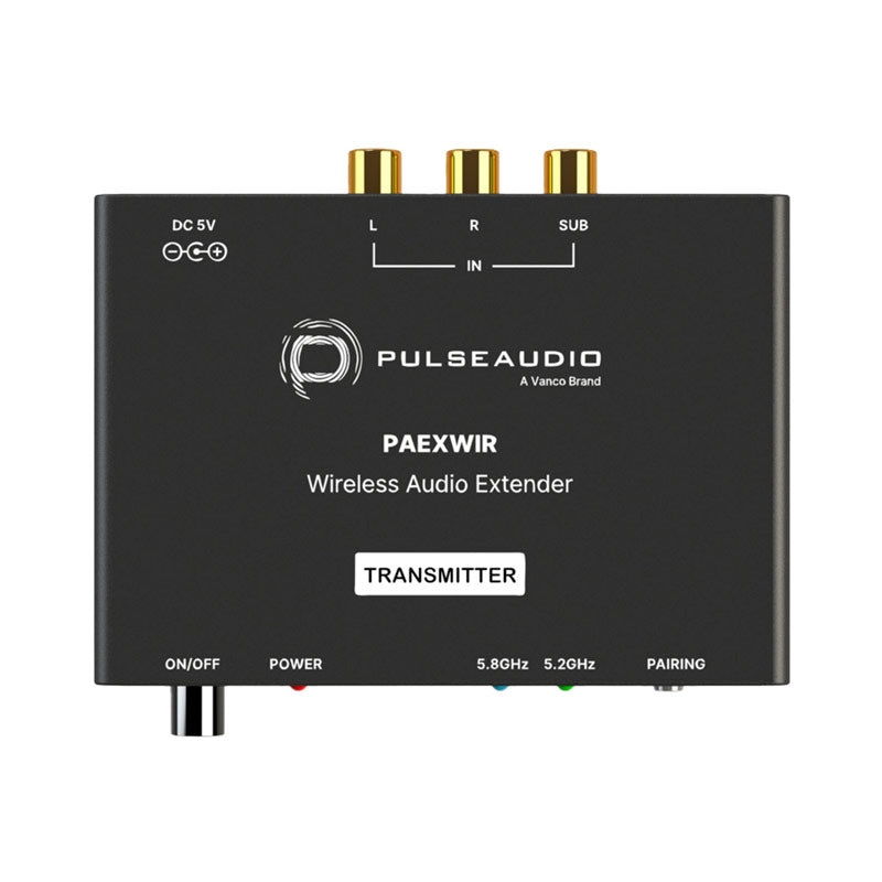 The PulseAudio PAEXWIR wireless audio extender allows stereo analog signals and subwoofer audio to be extended wirelessly up to 164ft (50m) with line of sight or 50ft (15m) through walls, ceilings, and floors (WiFi rules apply). This device utilizes 5.2GHz or 5.8GHz signals to help reduce interference resulting in a consistent and stable connection without comprising audio quality. The PAEXWIR is a great solution where cabling cannot be run to remote speakers or subwoofers.