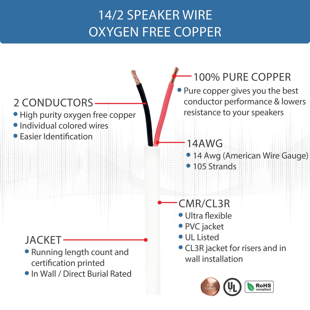 UL listed, RoHS Compliant and CMR/CL3R rated. With your choice of AWG, this cable is great for in-wall installation within your home or office connecting speakers throughout. With its ultra-flexible durability, this cable can be use outdoors with direct burial for those in-ground speaker applications.