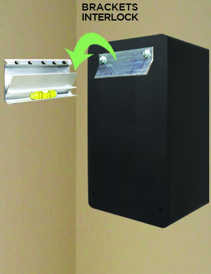 Mount speakers in minutes with No Stud Speaker Hangers. Our patented system uses tiny picture hanging nails to hang speakers up to 30 lbs. each without damaging walls. Two interlocking aircraft-grade aluminum brackets provide extraordinary strength. A foam pad on the wall bracket protects walls from scuffing. Simply mount one bracket on the speaker with included screws, then install the wall bracket with a hammer, tapping tiny picture nails into drywall, plaster or paneling. These nails leave only pinholes upon removal. No screws, studs, or drilling necessary. An included level guarantees straight installation.