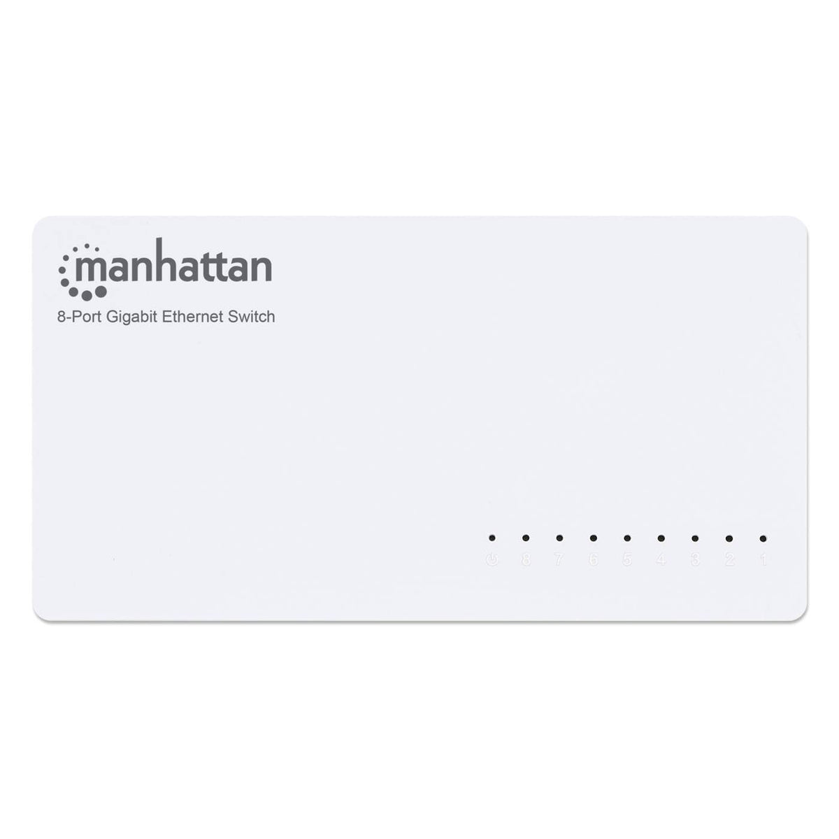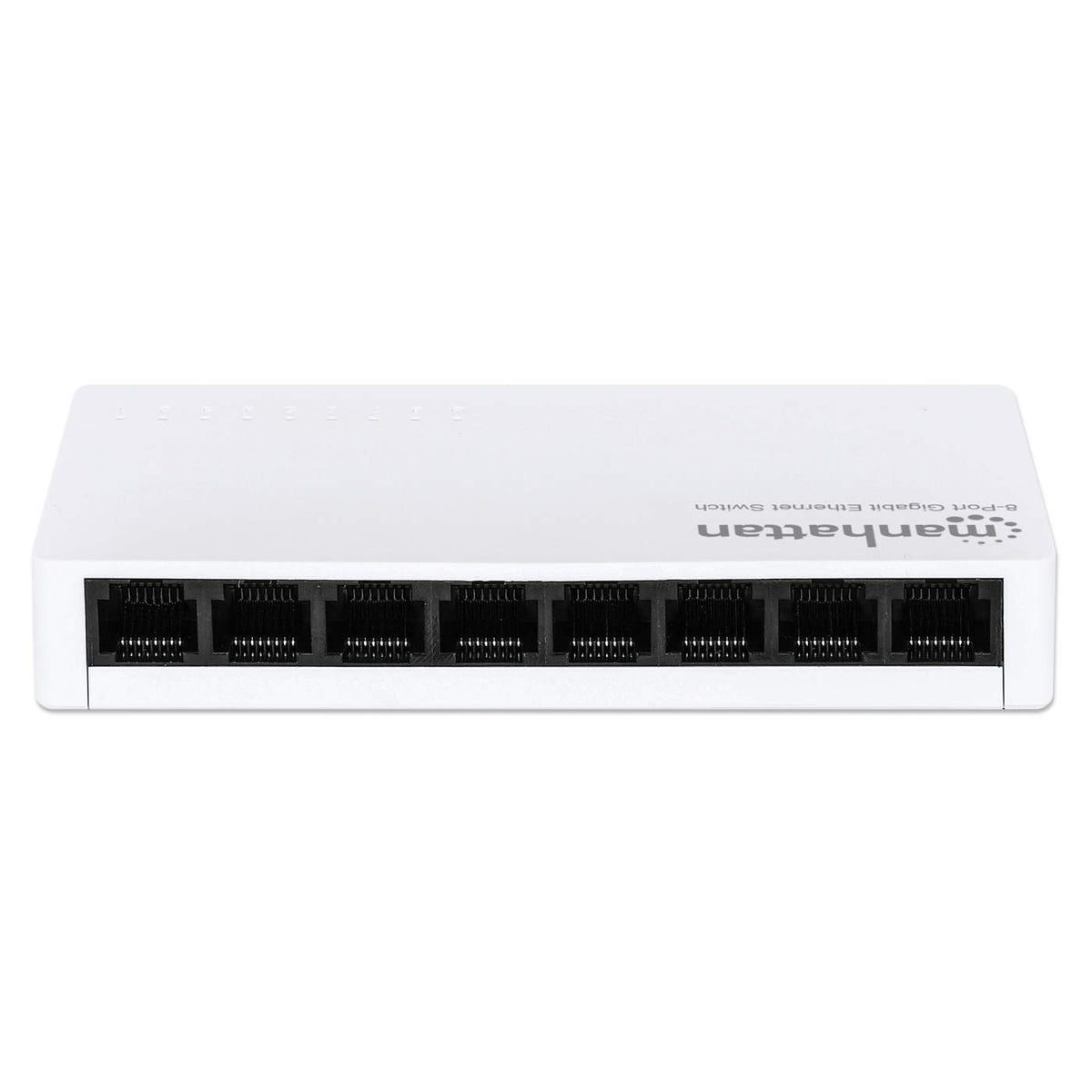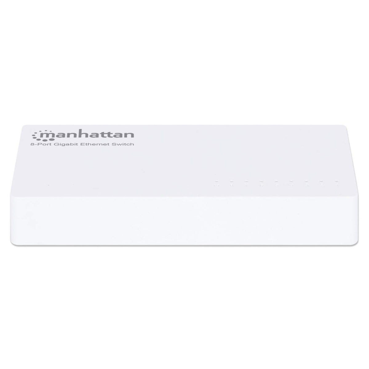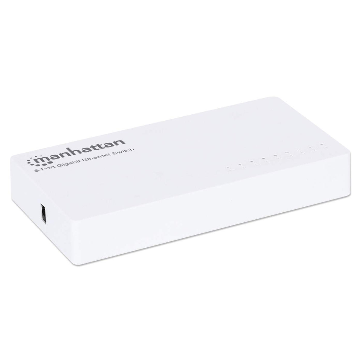 The Manhattan 8-Port Gigabit Ethernet Switch is perfect for home office or entertainment system use, as well as many small office applications. Small, powerful and reliable, this Gigabit Ethernet Switch is easy to install and connects up to eight Ethernet-ready devices — computers, gaming systems, network printers, media streamers, network attached storage, Smart TVs ... you name it — at speeds of up to 1000 Mbps (1 Gigabit) over standard Cat5e or Cat6 Ethernet cables.