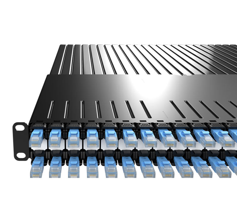 PATCHBOX uses flat patch cords, 100% tested according to ISO Class-E Standards (CAT 6a). Our flat patch cords only use 1/4 of the space a conventional patch cord would.