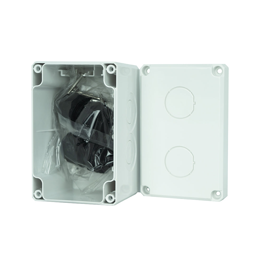 Waterproof IP68 Rated Surface Mount Box, 2 port with 2 cable glands. Compatible with S45-WP3203. White – 1ea/Box.