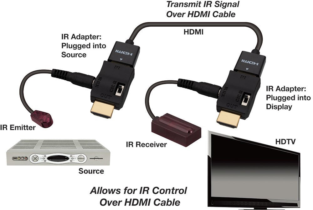 - IR Emitter Pigtail connects to HDMI IR adapter at the source