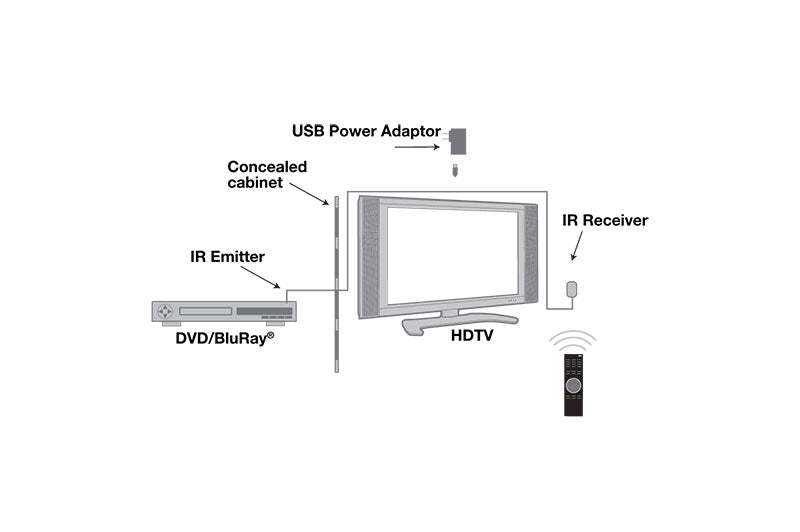 - Includes (1) IR Emitter, (1) IR Receiver, and USB connection for power (all in one cable)