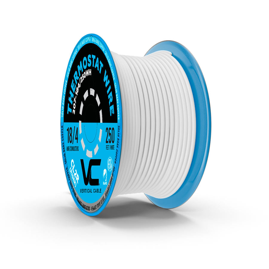 Vertical Cable Thermostat Wire, Solid Bare Copper, 18/4, CL2R, ETL, PVC Jacket, 250ft Spool