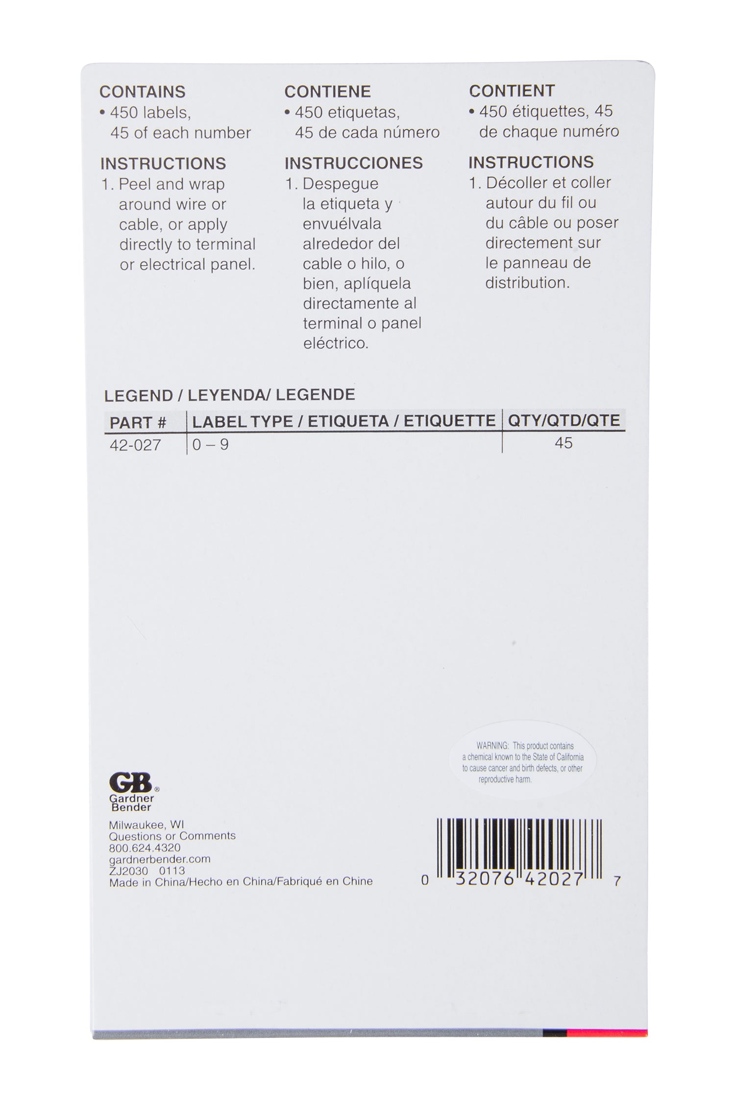 Gardner Bender Pocket Pack Wire Markers (numbers 0-9), 42-027