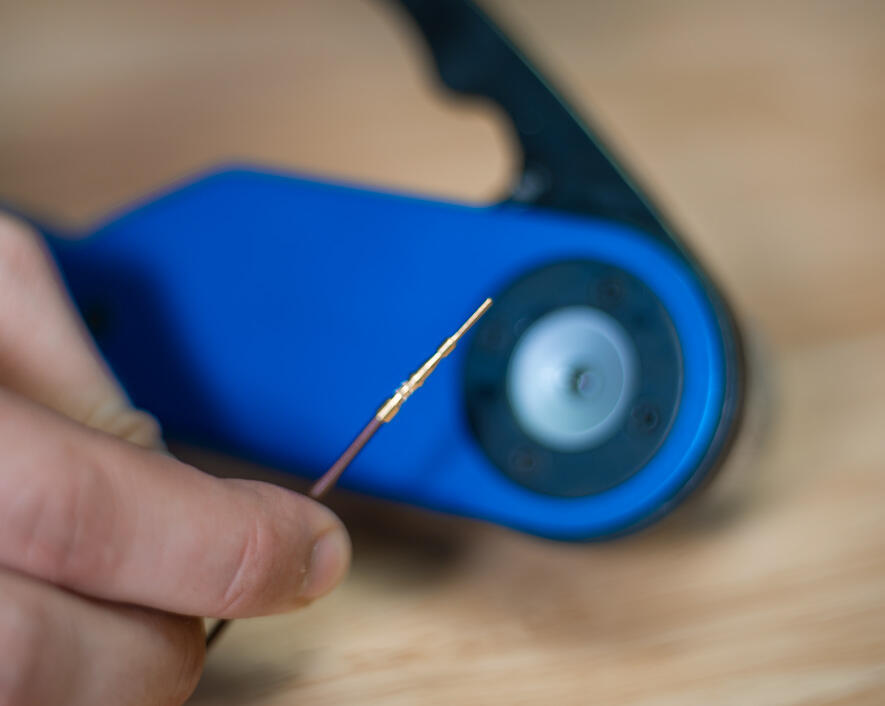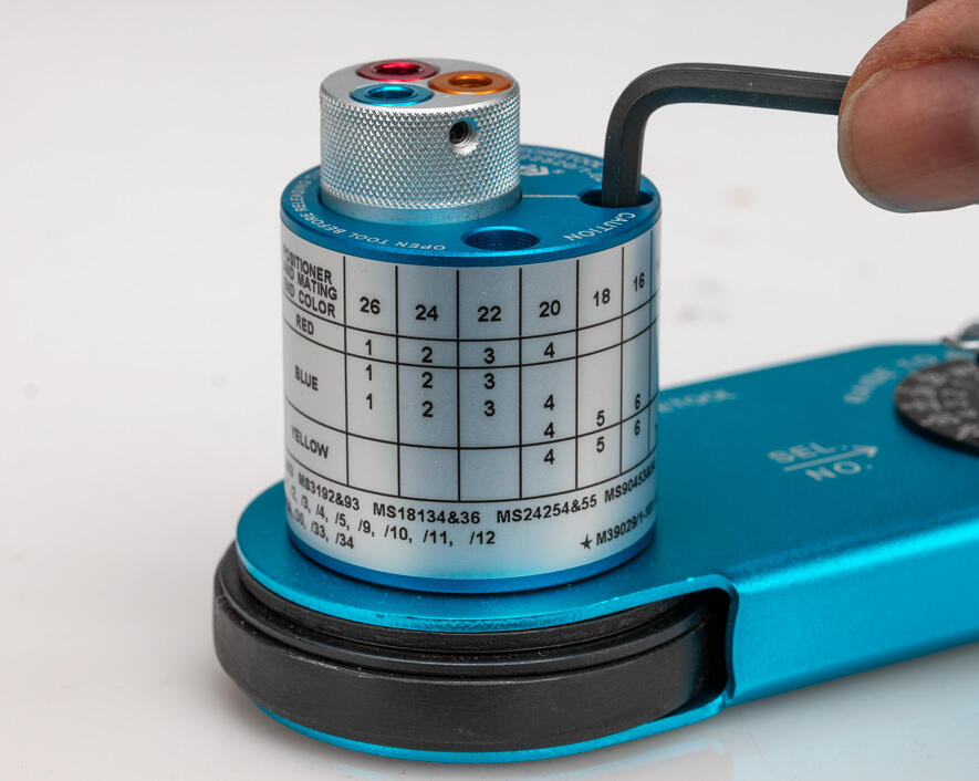 Designed for use with our CMP-3 turret head and most other turret heads, this precision crimping tool is perfect for crimping front release connector contact pins onto 12-26 AWG wire.