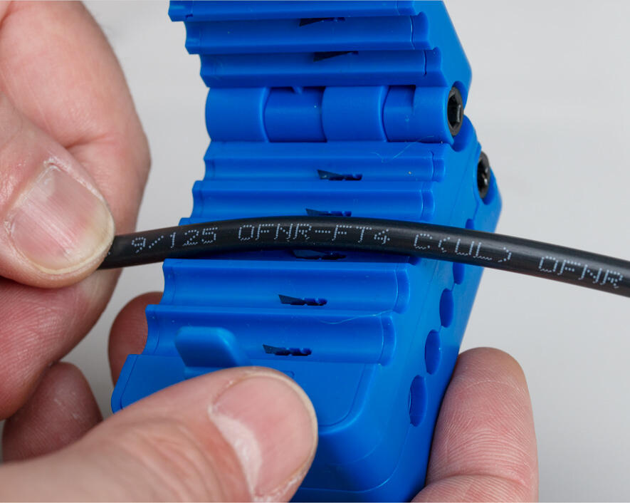 - One side of the tool performs radial/ring cuts and the other side slits the cable (longitudinal cut)