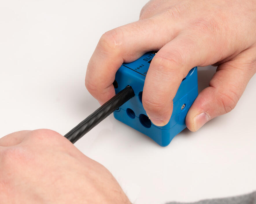 - One side of tool performs Radial/ring cuts and the other side slits the cable (longitudinal cut)