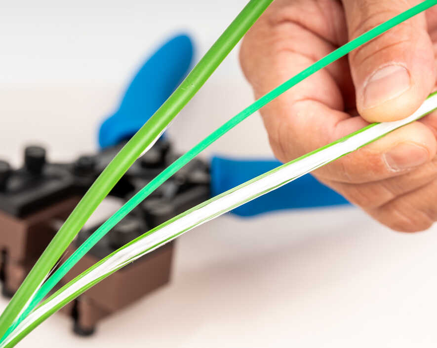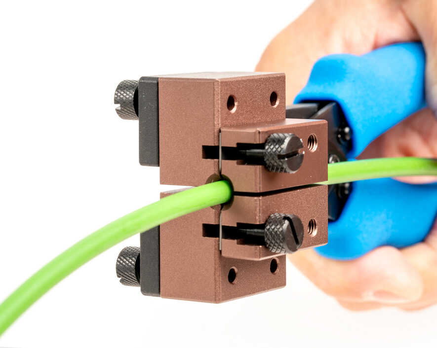 - Guide blocks hold the cable in place for accurate and precise cable slitting