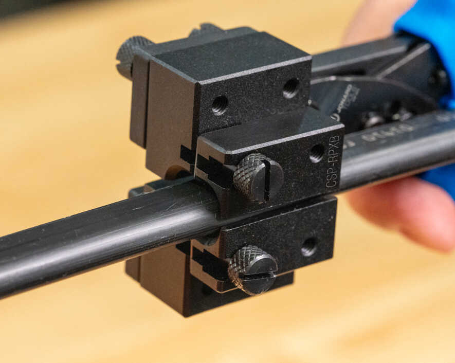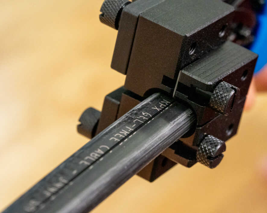 - Guide blocks hold the cable in place for accurate and precise cable slitting