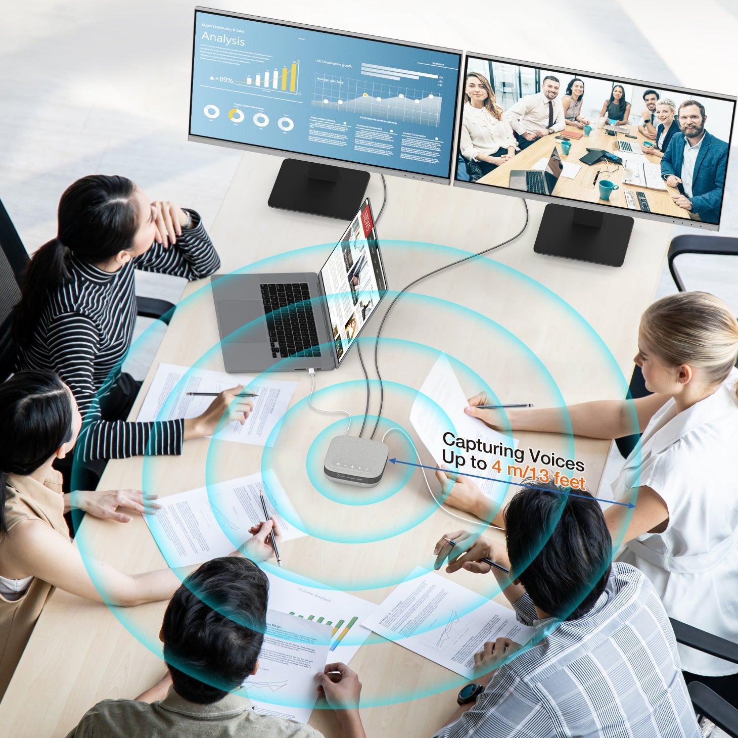 The speaker & microphone function provides crystal-clear audio for conference calls. Four omnidirectional microphones are included to pick up voices from around the conference table and uses Acoustic Echo Cancellation to eliminate echo and unwanted background noise. The built-in buttons make it simple to initiate calls, hang up and mute/unmute and adjust the volume. The speakerphone dock is small and lightweight for easy placement and transportation. It’s plug-and-play and ready to use with your favorite video conferencing apps. All docking and speakerphone functions are combined into one compact docking station, so you will have all the connections you need to stay productive!