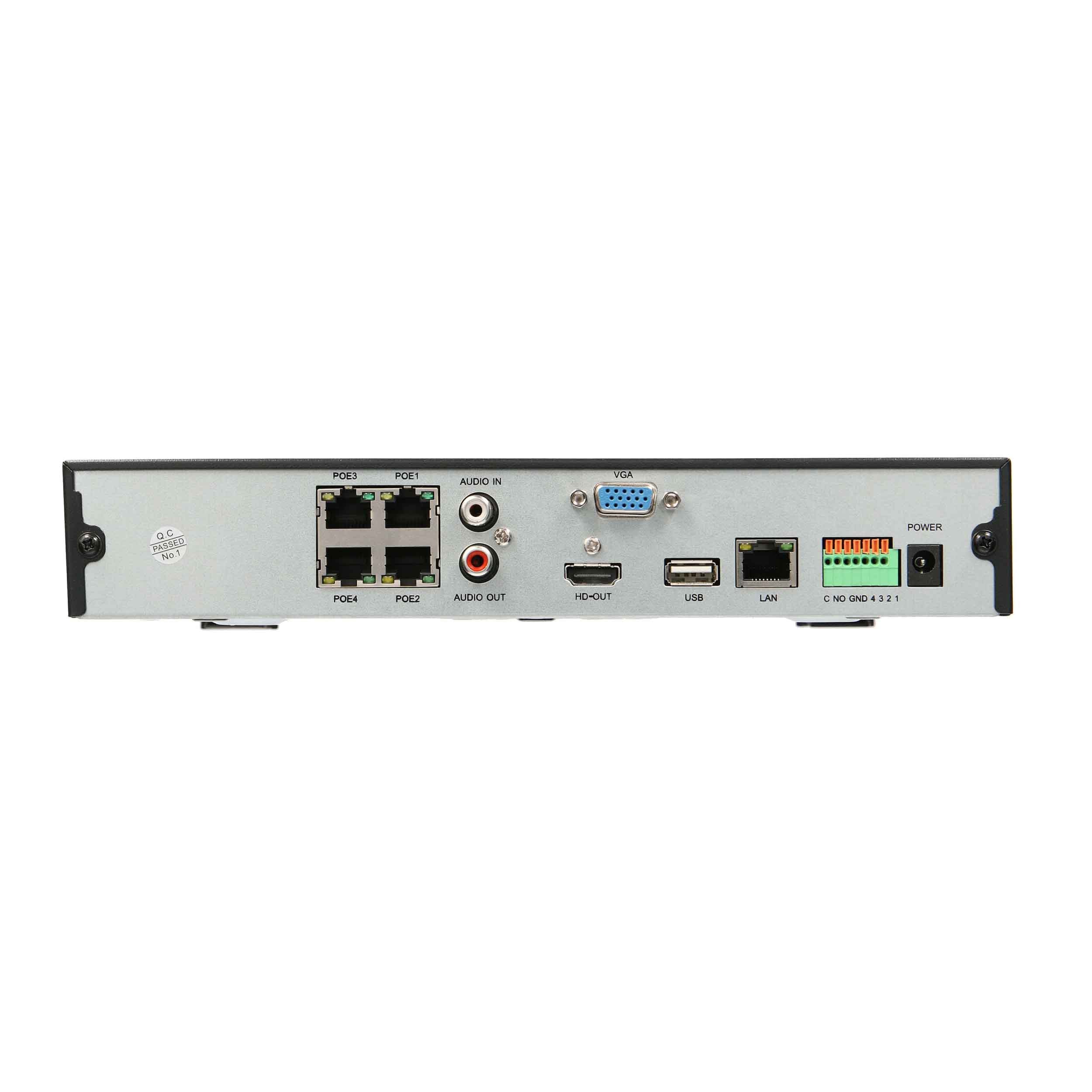 - (4) POE LAN ports connection for direct camera connection and can add up to 12 additional cameras connected to the same LAN for a total of up to 16 channels of recording