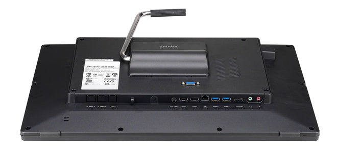With the XPC all-in-one P90U Shuttle expands its product range of All-in-One PCs and introduces its largest model so far. It is the first one in a 19.5 inch format and with a capacitive touchscreen. An Intel Ultra-Low-Voltage (ULV) processor makes for high computing power while it keeps energy consumption at a low level. Thanks to its passive cooling, the system is virtually noiseless, maintenance-free and approved for 24/7 nonstop operation. Particularly suitable for vertical applications is the arrangement of connectors at the bottom and the IP54 compliant front panel which is dust-protected and protected from splashing of water.