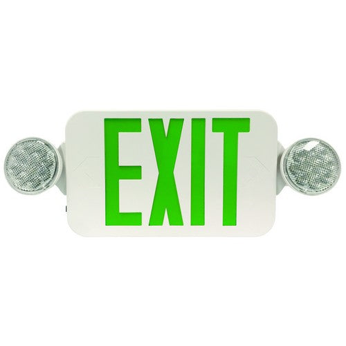 Round Head LED Combo Exit Emergency Light High Output Remote Capable with Self Diagnostic Green LED White Housing -