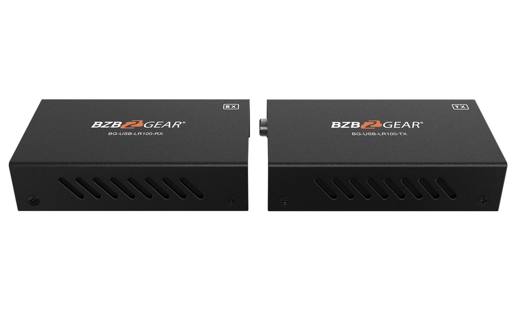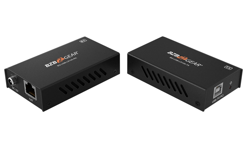 The BG-USB-LR100 USB 2.0 Extender over Single Cat.X allows USB devices to be extended at distances up to 100 meters (328 feet). This unit consists of two devices - transmitter and receiver.