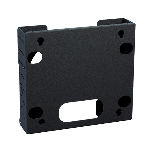 What you have here is the PWCU, part of the PWC series with CPU storage available. This mount is a simple, all-in-one tilt wall mounting solution that's ideal for digital signage applications. It’s fairly simple but can handle up to 200 pounds of weight. This is near impossible to exceed now with modern televisions, even if you go with the maximum size of 71 inches. Plus, once mounted, it has a built-in lateral shift along the center stud.