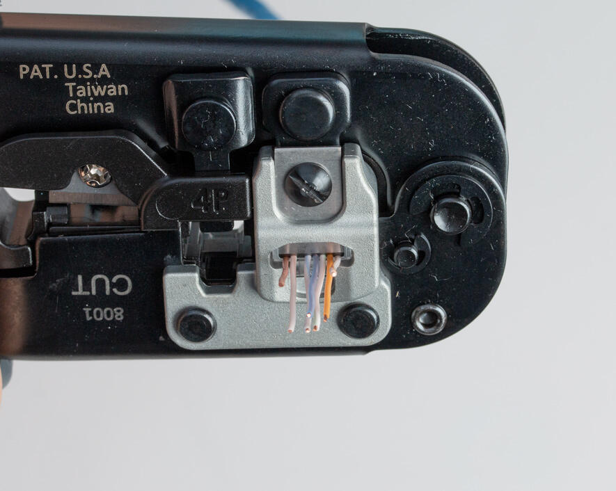 - Crimps 4, 6, and 8 position modular connectors (RJ11/12 and RJ45)