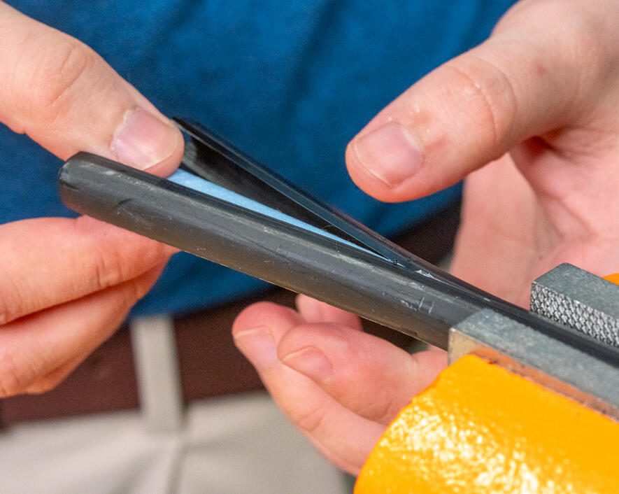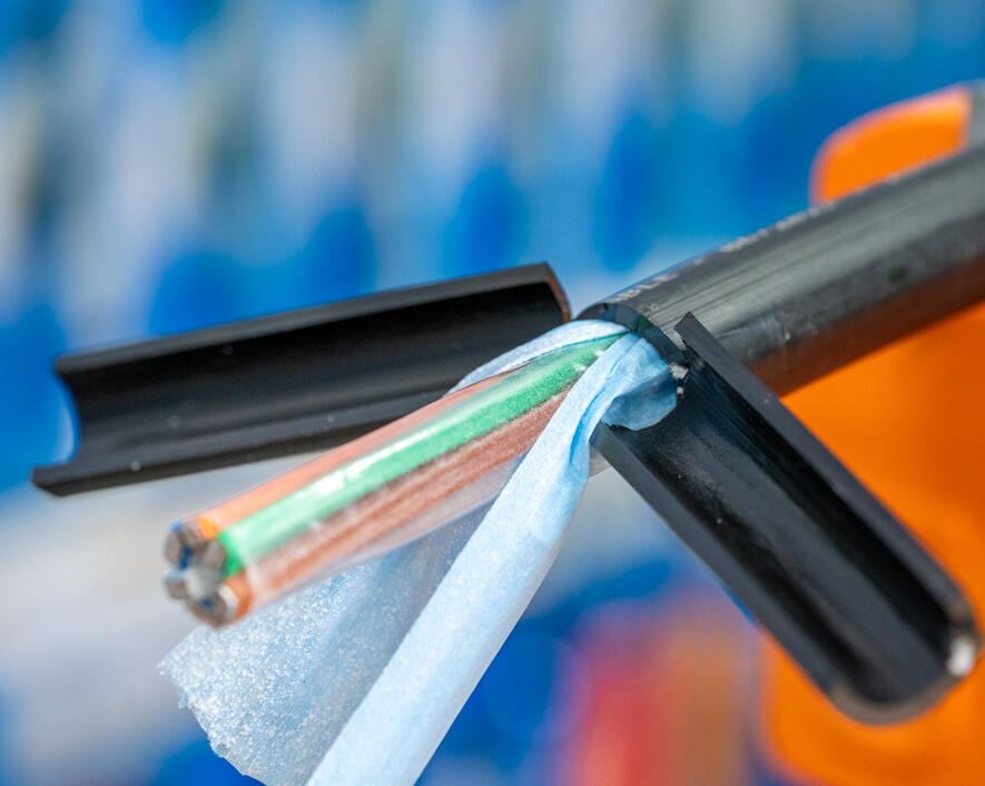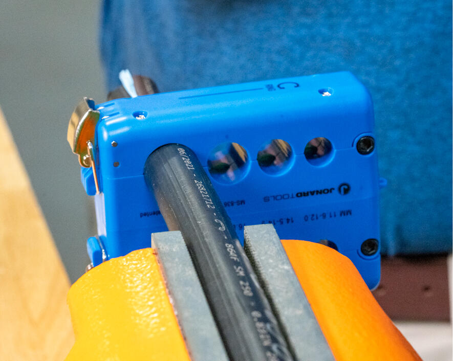 - One side of the tool performs radial/ring cuts and the other side slits the cable (longitudinal cut)